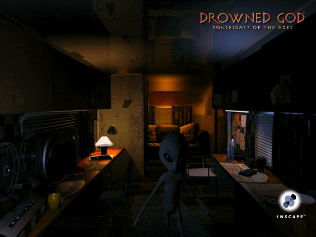 Inscape's contribution, Drowned God, has a decidedly dark and disquieting quality. The reality in the game is a shadowy version of our own, filled with figures from our own history. Leonardo DaVinci, Carl Jung, Aleister Crowley, and the Man in the Iron Mask as well as historic events from Genesis to the JFK assassination are all woven into the story--fitting remarkably well, due to some good research. I would recommend downloading and installing the latest patchsee below for the game (I had a number of problems which have all been addressed in the latest patch). Once the patch has been installed--fixing the numerous problems with ActiveX/video card conflicts--the player is ready to be immersed in a world of conspiracy and deceit. Some tips I would give players include: 1) Enter your full name when asked. 2) Listen closely--some of what is said to you is difficult to hear and there are no subtitles. 3) Write stuff down!